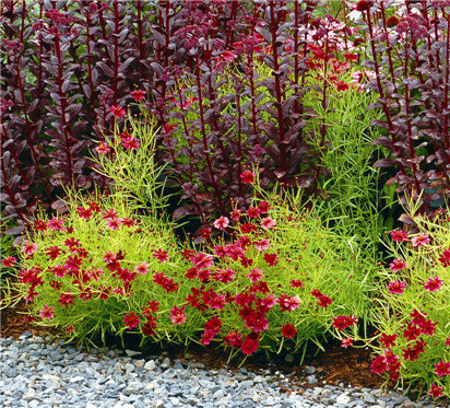 美國特拉諾娃公司亞洲區代表陳成介紹,傳統的金雞菊主要以黃色為主,而金雞菊“檸檬汁”系列的最大特點是彩花加彩葉的組合,使得植株整體色彩亮麗,十分搶眼。目前花朵有粉、橙、紅等花色,而葉片呈淺黃色或者亮綠色。“檸檬汁”持續開花能力強,花期能從5月底一直延續至10月。