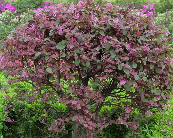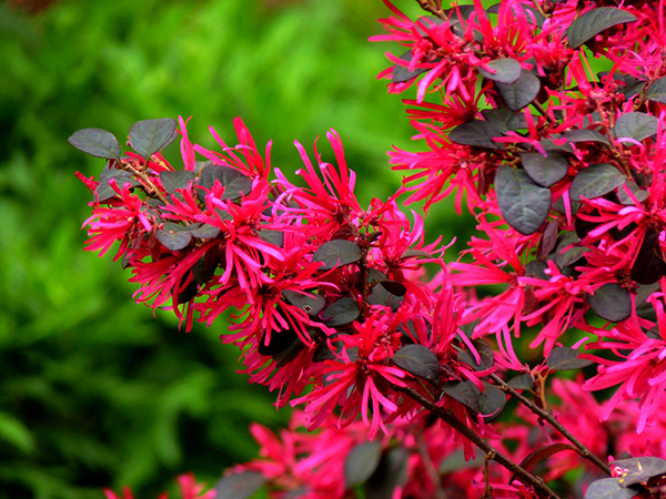 紅花檵木有40多個品種,而大多數人選擇的是葉色較紅的品種,如‘四季紅’‘黑珍珠’等品種,都是以觀葉為主。實際上,紅花檵木也是觀花的好品種,不管花色是深紅還是粉紅,花期都非常具有觀賞價值。